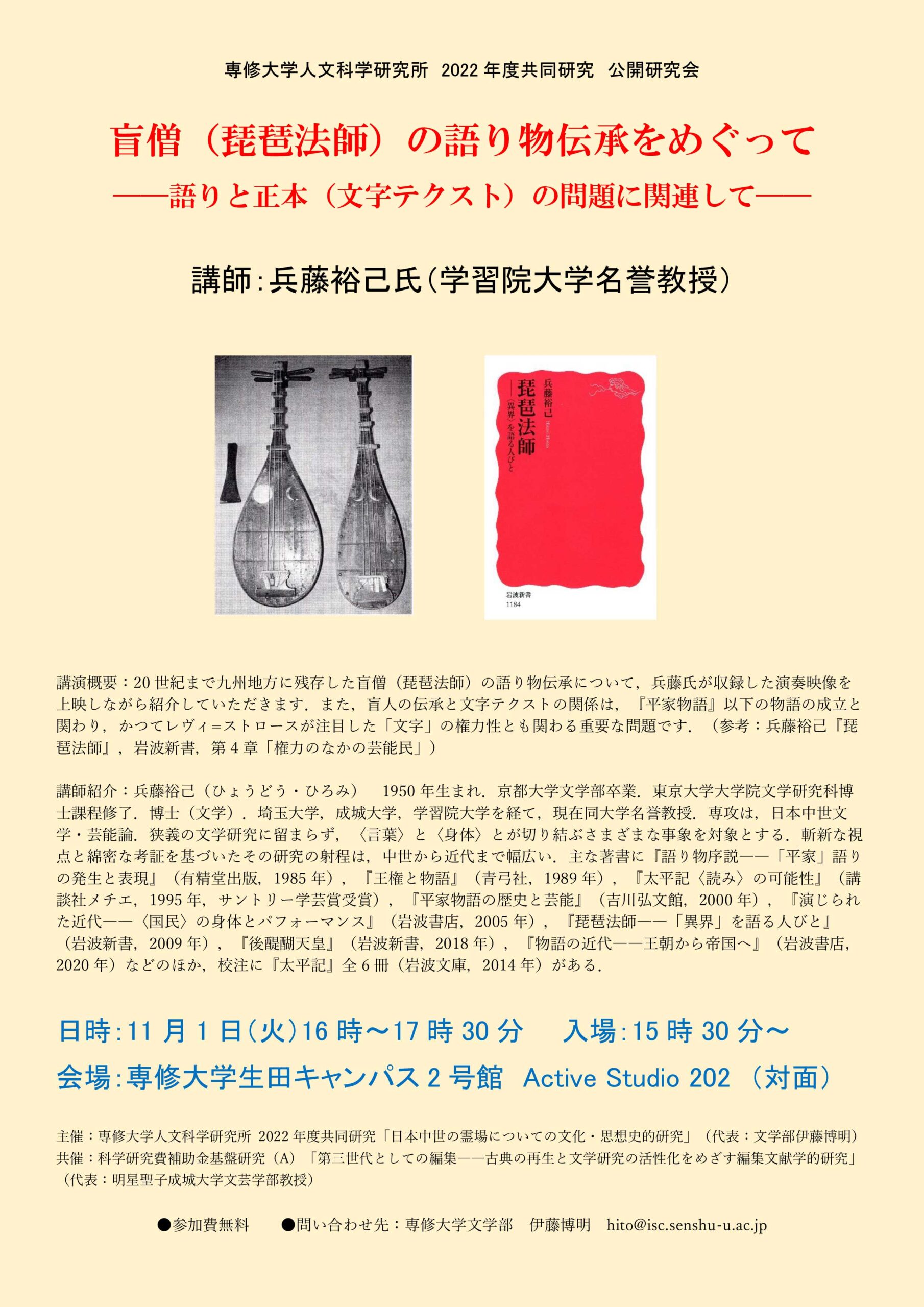 The Open Research Seminar for the 2022 academic year, jointly hosted by our center and the Institute for the Humanities at Senshu University, will be held under the following details: